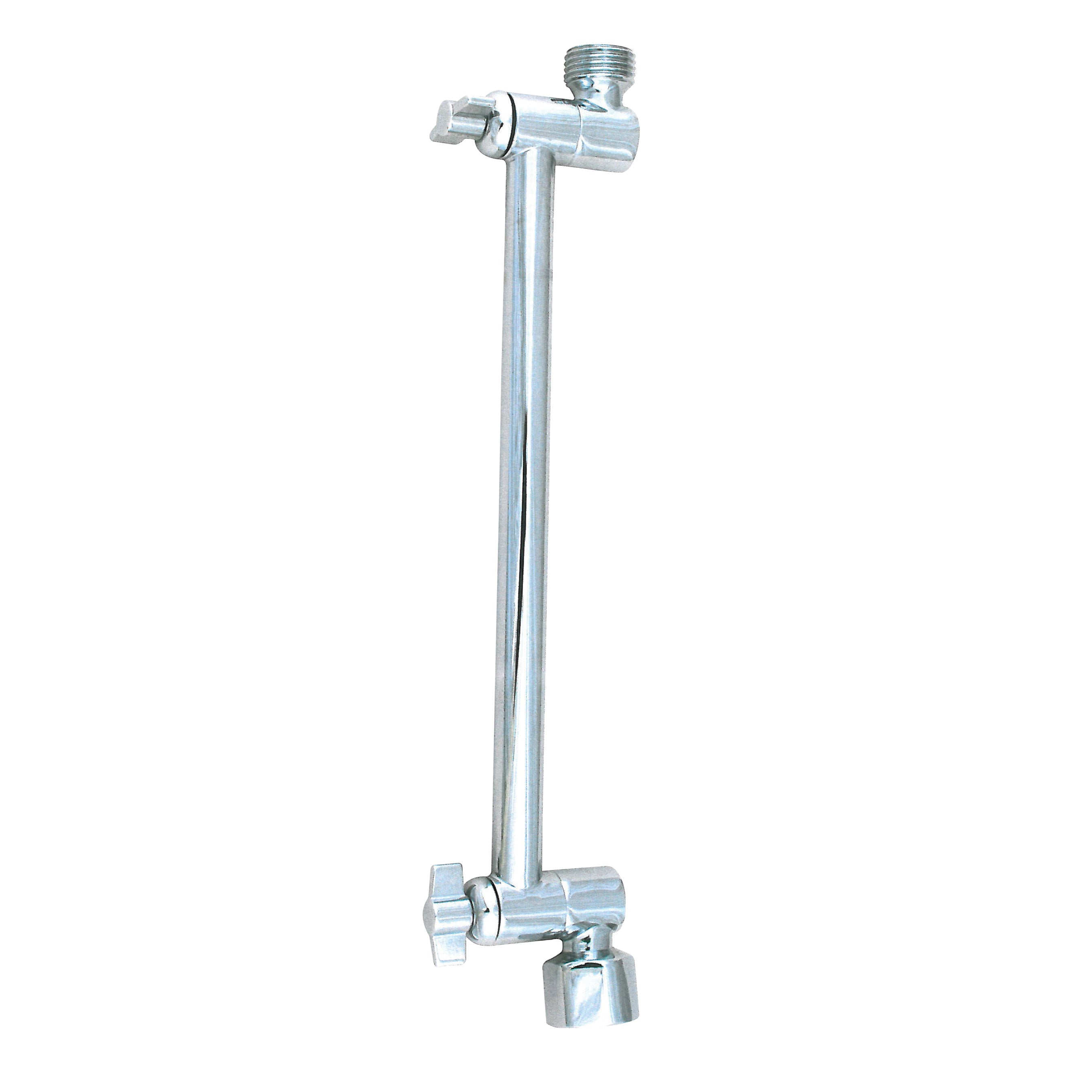 Installs easily between any standard shower head and arm with standard 1/2 in threads. Adjusts shower height a total of 18 in, 9 in swing shower arm swings up for tall people and down for kids and keeping hair dry.