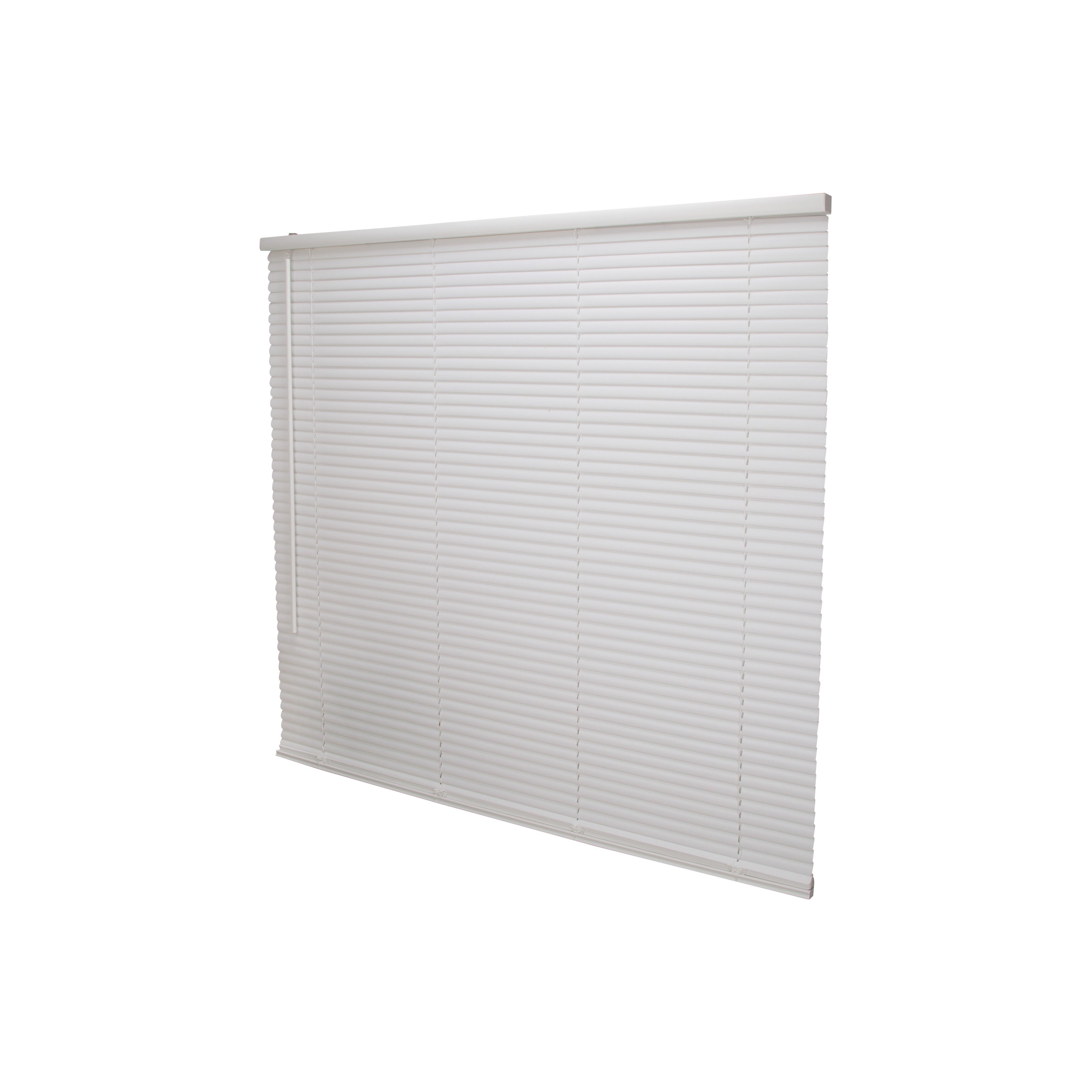 Simple Spaces Blind, Cordless, Mini, Vinyl, White, 64 in Length, 43 in Width, 0.33 mm Thickness, Inside Mounting, Suitable for: 42-3/4 to 43-1/2 W Window in, Includes: Mounting Hardware and Instructions