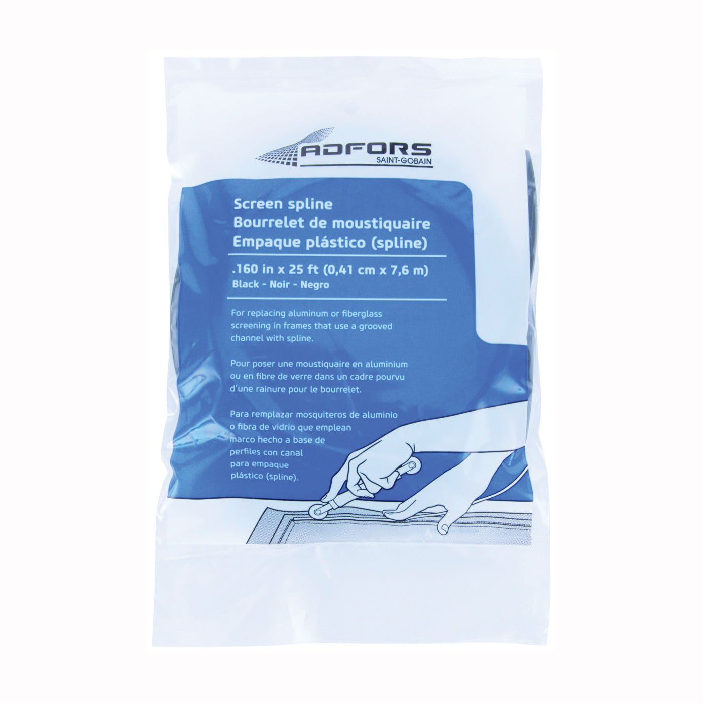 • Adfors FCS8541-U Screen Retainer Spline, 0.160 in D, 25 ft L, Vinyl, Black, Round