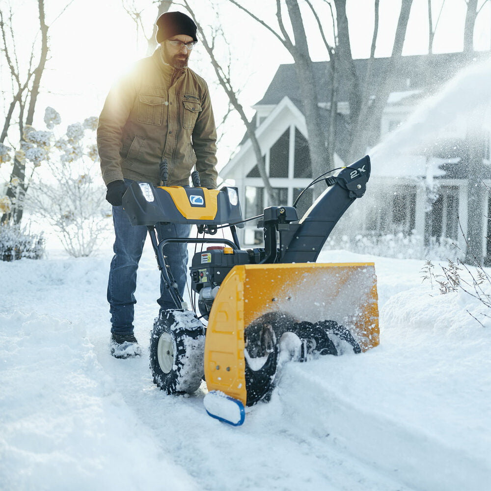 Cub Cadet Snow Blower, Cub Cadet 675-WUB Engine, 243 cc Engine Displacement, 2 Stage, Chute Rotation: 200 deg, Throw Distance: 40 ft, Lever Control, 2 qt Fuel Tank, Recoil, Pushbutton Start, Clearing Width: 24 in, Intake Height: 21 in, Steel