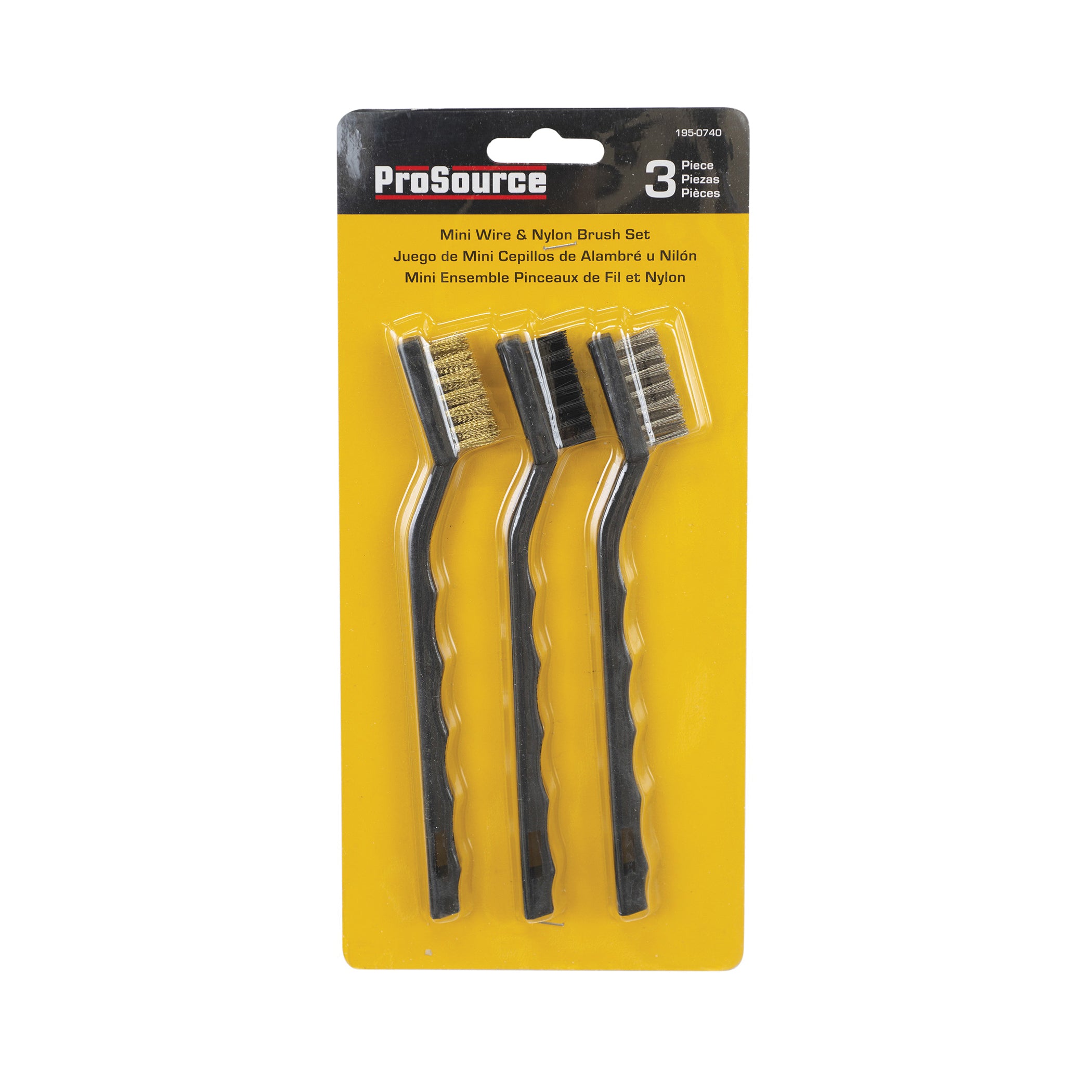 Ideal for removing paint, varnishes and rust from contoured and hard to reach areas. This 3 piece mini scratch brush set comes with (1) brass, (1) stainless steel and (1) polyester bristle brush.
