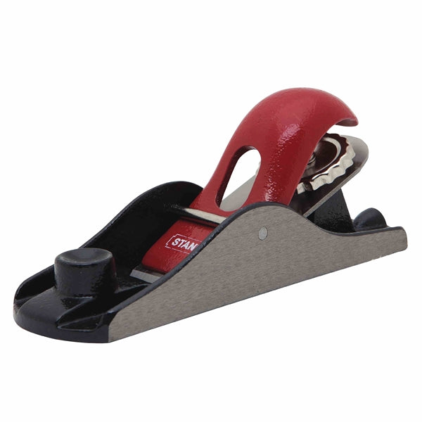 Machined sides. Cutter rests at a 21 deg angle. Ideal for cross-grain planing. Thickness and evenness of shavings can be changed by loosening the clamping wheel and manually adjusting cutter. Gray, cast-iron base, durable epoxy coating and a finger-rest at front of plane.