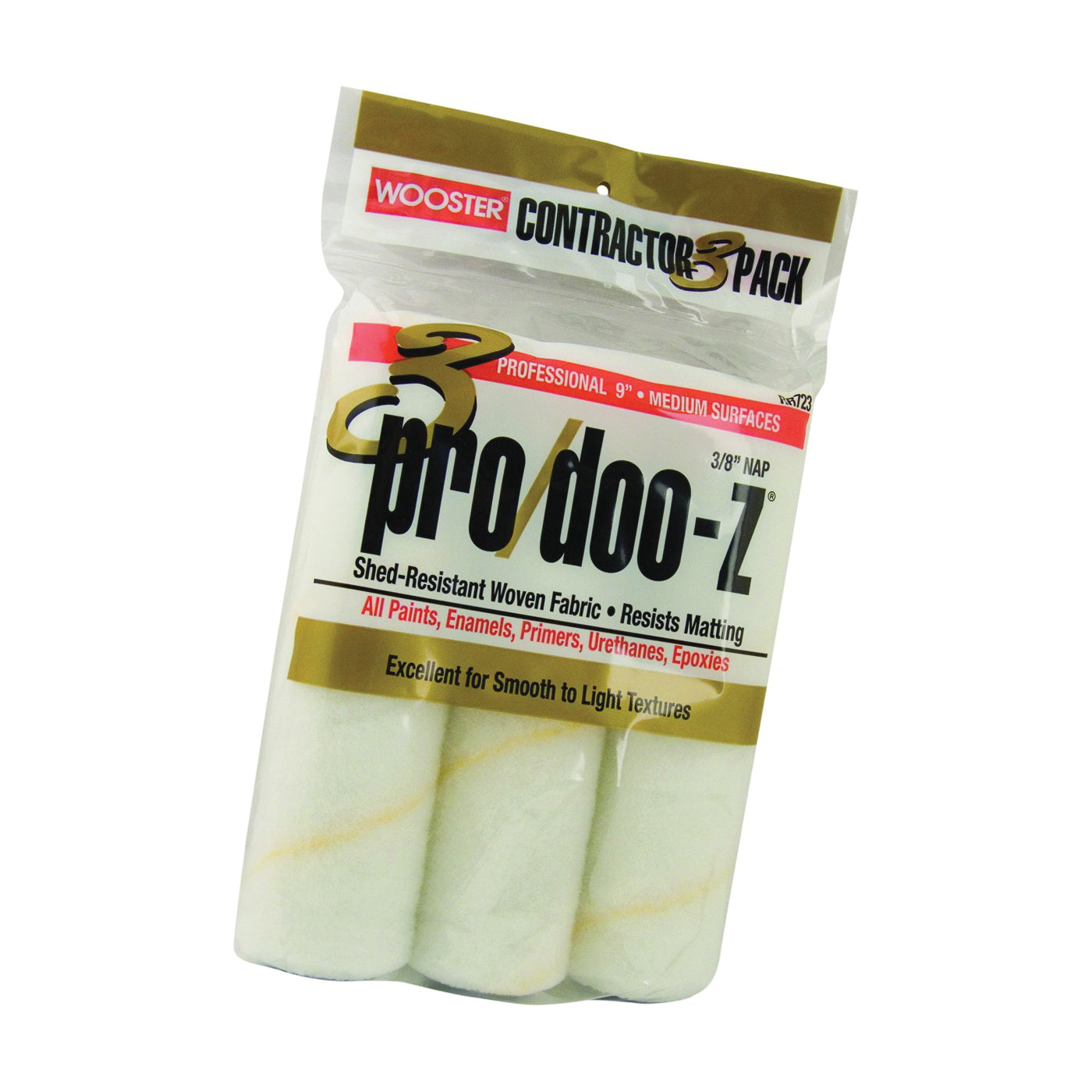Shed-resistant for all paints, enamels, primers, urethanes, epoxies. Proprietary high-density white fabric with a golden pinstripe stays resilient, resists matting for the smoothest professional finish.