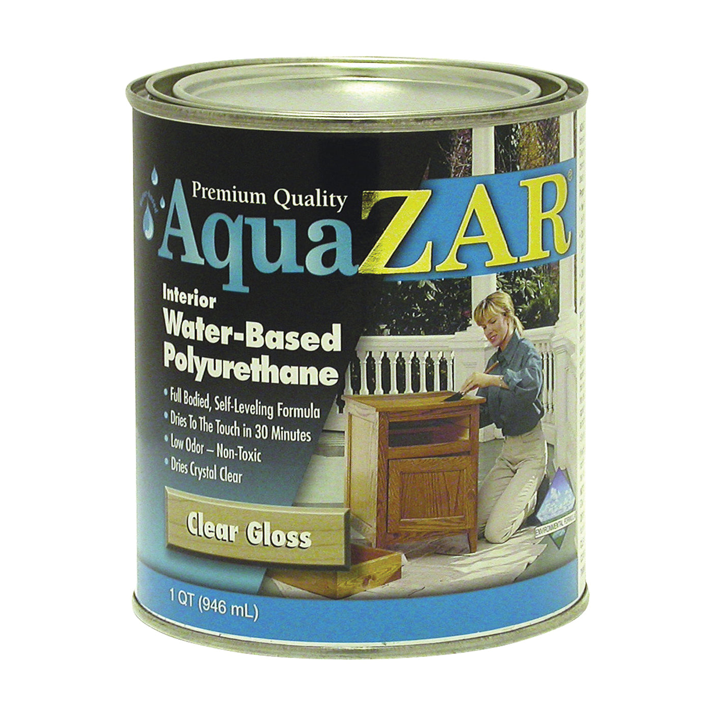 This non-yellowing, environmentally safe, clear wood finish is specially formulated to protect and beautify cabinets, furniture, shiplap paneling, woodwork and floors. As it dries crystal clear, you can use it over light colored or white stains with confidence. Aqua ZAR® water-based polyurethane is exotic hardwood approved and is ideal for use on teak, Brazilian walnut and other similar wood species. Aqua ZAR® water-based polyurethane combines the beauty and durability of an oil-based polyurethane with the environmental benefits of a water-based clear finish. The fast drying, low odor formula resists most household chemicals and abrasions. The product's full-bodied formula brushes on like conventional polyurethane for maximum durability and beauty. Aqua ZAR® water-based polyurethane meets all environmental standards for low emission of solvent vapors.