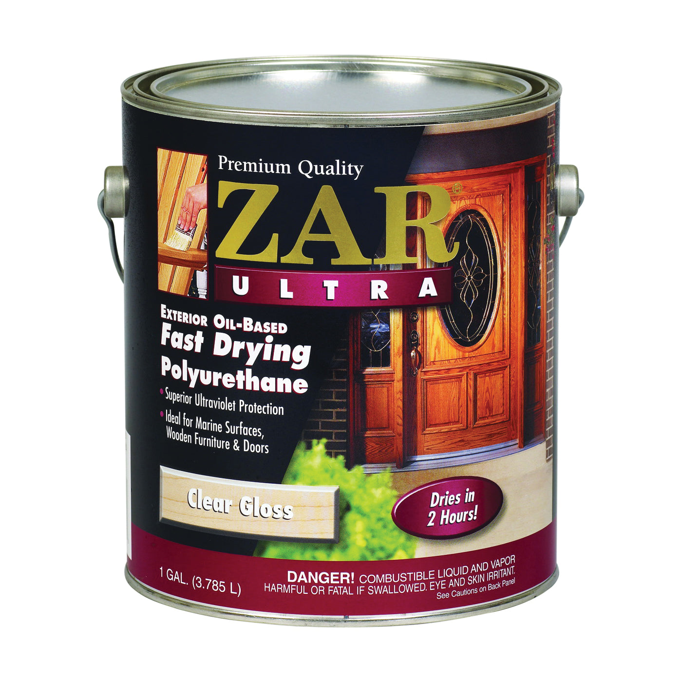 ZAR ULTRA Exterior polyurethane is an incredibly fast-drying, oil-based, clear wood polyurethane finish that dries in only 2 hrs. Formulated with UV radiation absorbers and antioxidants, it's specifically formulated to protect exterior surfaces that are subjected to direct sunlight. ZAR ULTRA exterior polyurethane is ideal for wooden marine surfaces that are located above the waterline, exterior doors (fiberglass and steel), patio furniture, fences, gables and other wood surfaces exposed to extreme, harsh weather.