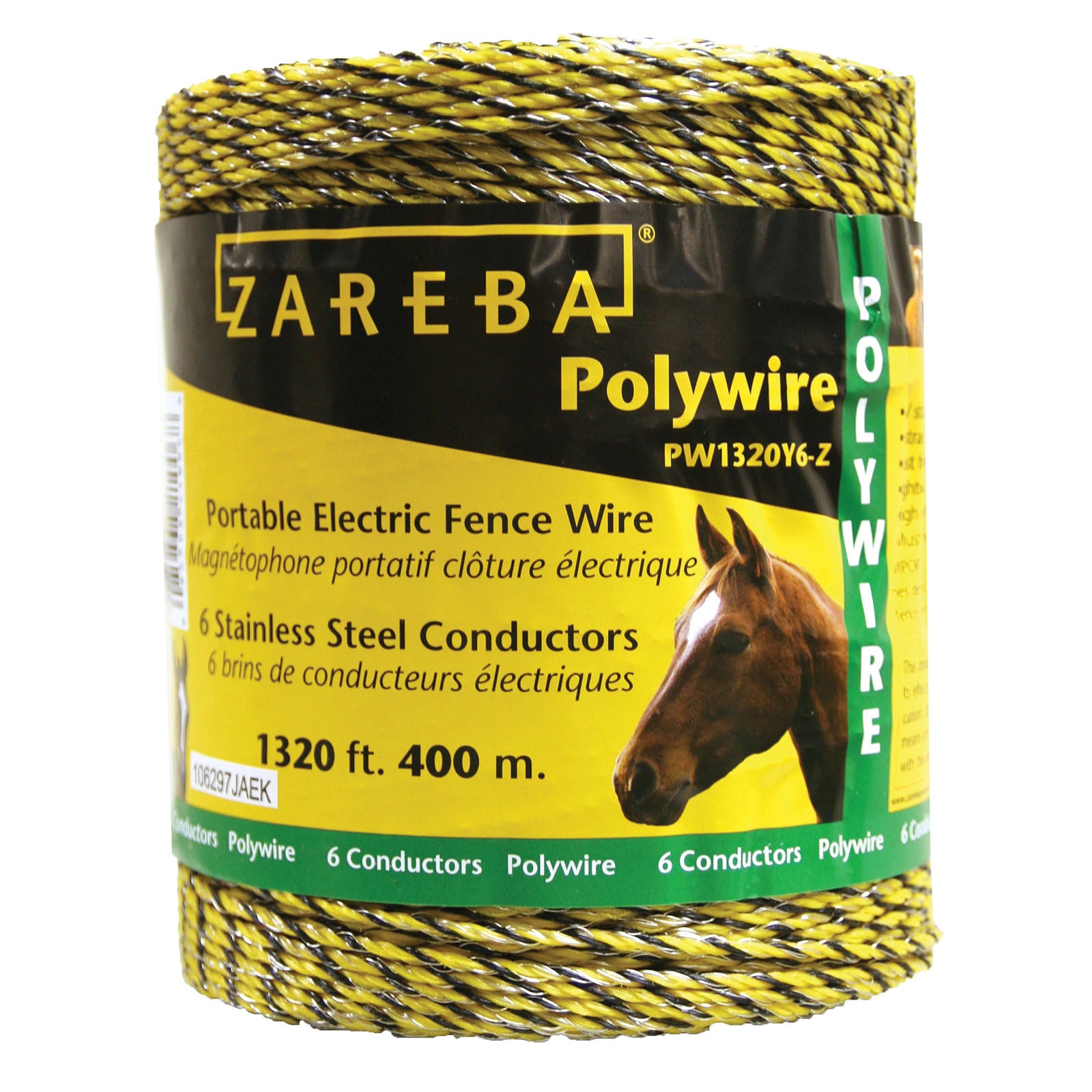 Easy to handle, install and rewind, weighs 3 lb/1000 ft. 6-yellow and black interwoven conductive wires. Can be used over and over in temporary pastures for temporary grazing, strip or rotational grazing and general pasture and pet control. Easily tightened and repaired, use a polywire tightener, No.PWT6 to maintain wire tension as needed. For top results, energize poly wire fence lines with a low impedance fence controller. Spool weight of 3.7 lb.