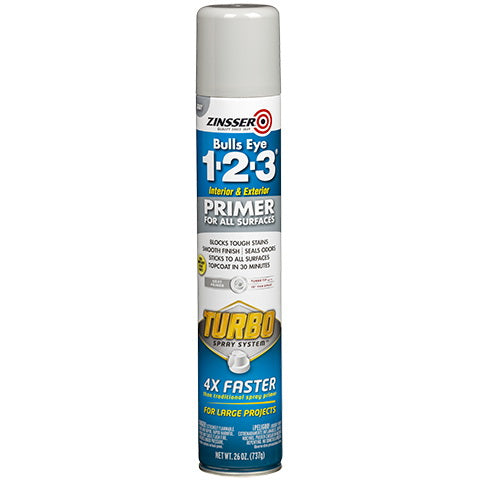 Innovative Turbo Spray System™ delivers the same trusted protection of traditional Bulls Eye® 1-2-3® but gets the job done four times faster. This whole-house primer-sealer seals porous surfaces like wood, drywall, cured plaster and even concrete, stucco and brick. Now you can tackle your largest projects faster and easier than every.