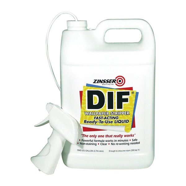 Zinsser® DIF® liquid ready-to-use wallpaper stripper is a fast-acting enzyme formula that works in minutes to remove nearly all types of wallpaper, decals, Contact® paper and dried adhesives. The unique, no-drip liquid eliminates runny messes and stays wet longer to reduce the need to constantly remoisten paper. DIF Liquid is a clear, low-odor, surfactant-rich liquid that is non-staining and leaves walls clean.
