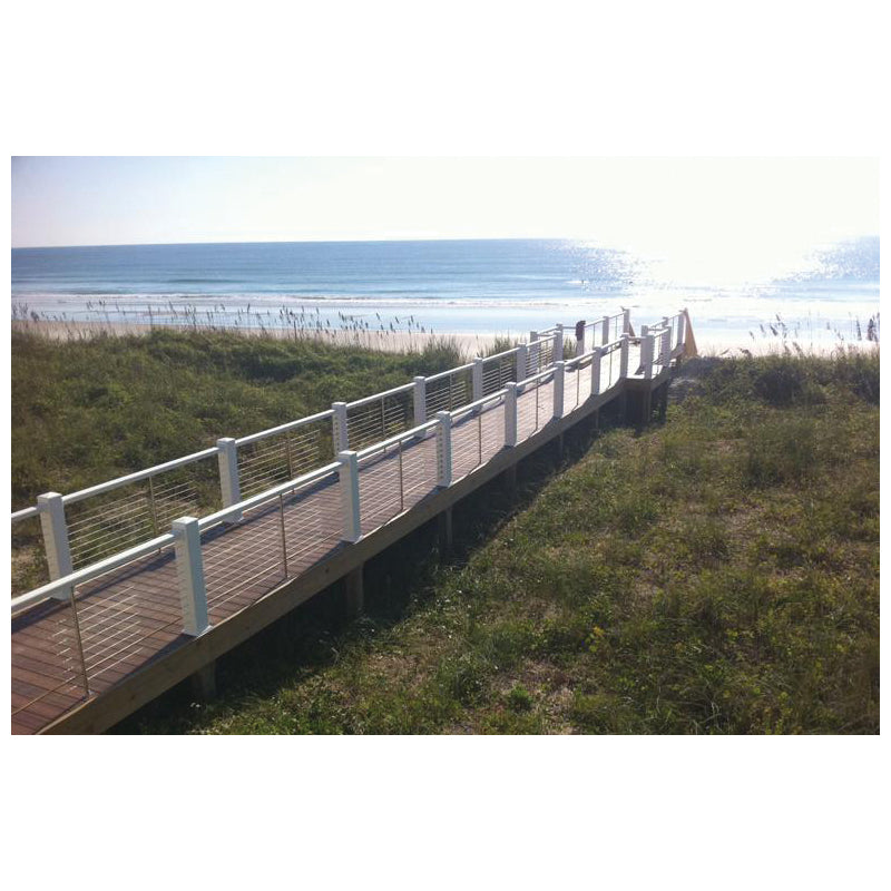 The cable stabilizer kit is designed specifically for use where post to post measurement spans over 4 ft. It enables you to adapt longer spans to code compliancy by stabilizing the deflection of cable between posts. Each kit comes with a 42 in stanchion pre-drilled to work with our standard 3 in spacing. In most cases, stanchions must be field cut at both ends for an accurate fit. The cable stabilizer kit cannot be used to replace the use of substantial mid posts and should never be used in spans over 7 ft.