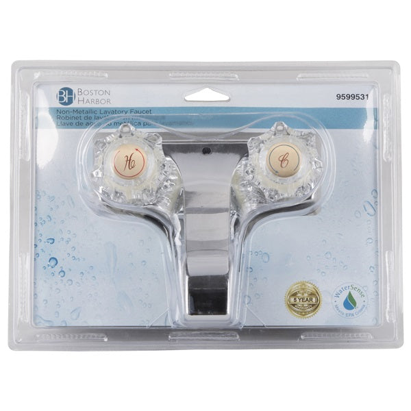 4 in centers. Washerless design, plastic waterways, water saving aerator, 1/2-14 NPSM inlet. Fits all standard basins. IAMPO & NSF certified, Carded.
