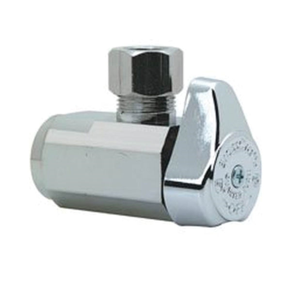BrassCraft® 3/8 in FIP inlet x 3/8 in OD compression outlet 1/4-turn angle valve controls water flow to household plumbing fixtures like faucets, toilets, dishwashers, icemakers, washing machines. The angle valve is most often used where the water pipe enters the room from the wall. With a 90 deg turn of the valve handle, you are able to stop the flow of water leading to the plumbing fixture, allowing for maintenance and repair without shutting off the water to the entire home.