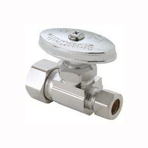 BrassCraft® 1/2 in nominal compression inlet x 3/8 in OD compression outlet multi-turn straight valve controls water flow to household plumbing fixtures like faucets, toilets, dishwashers, icemakers, washing machines. The straight valve is most often used where the water pipe enters the room from the floor. With a few turns of the valve handle, you are able to stop the flow of water leading to the plumbing fixture, allowing for maintenance and repair without turning off water to the entire home.