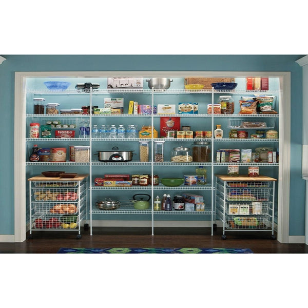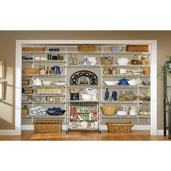 ClosetMaid® close mesh shelving is ideal for pantries. The deck wires are spaced 5/8 in apart versus the 1 in on our other wire shelving. This "close mesh" wire shelving keeps small items in the pantry from tipping. Install with the ShelfTrack system and create a fully adjustable pantry.