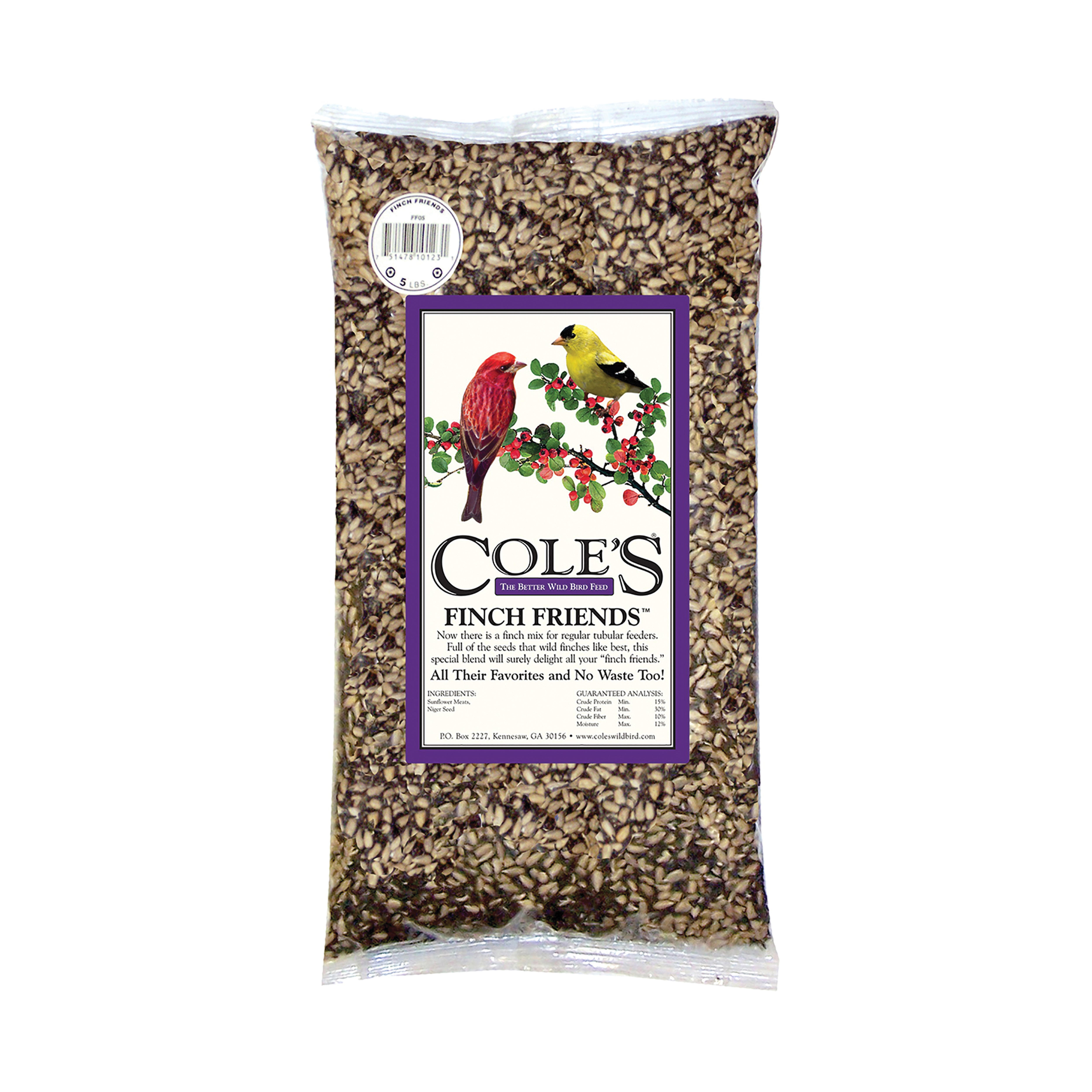 Finch Friends is the only finch mix developed for use in a regular tubular feeder. Just fill up your everyday feeder with Finch Friends and soon beautiful goldfinches, purple Finches and pine siskins will be dining at your door.