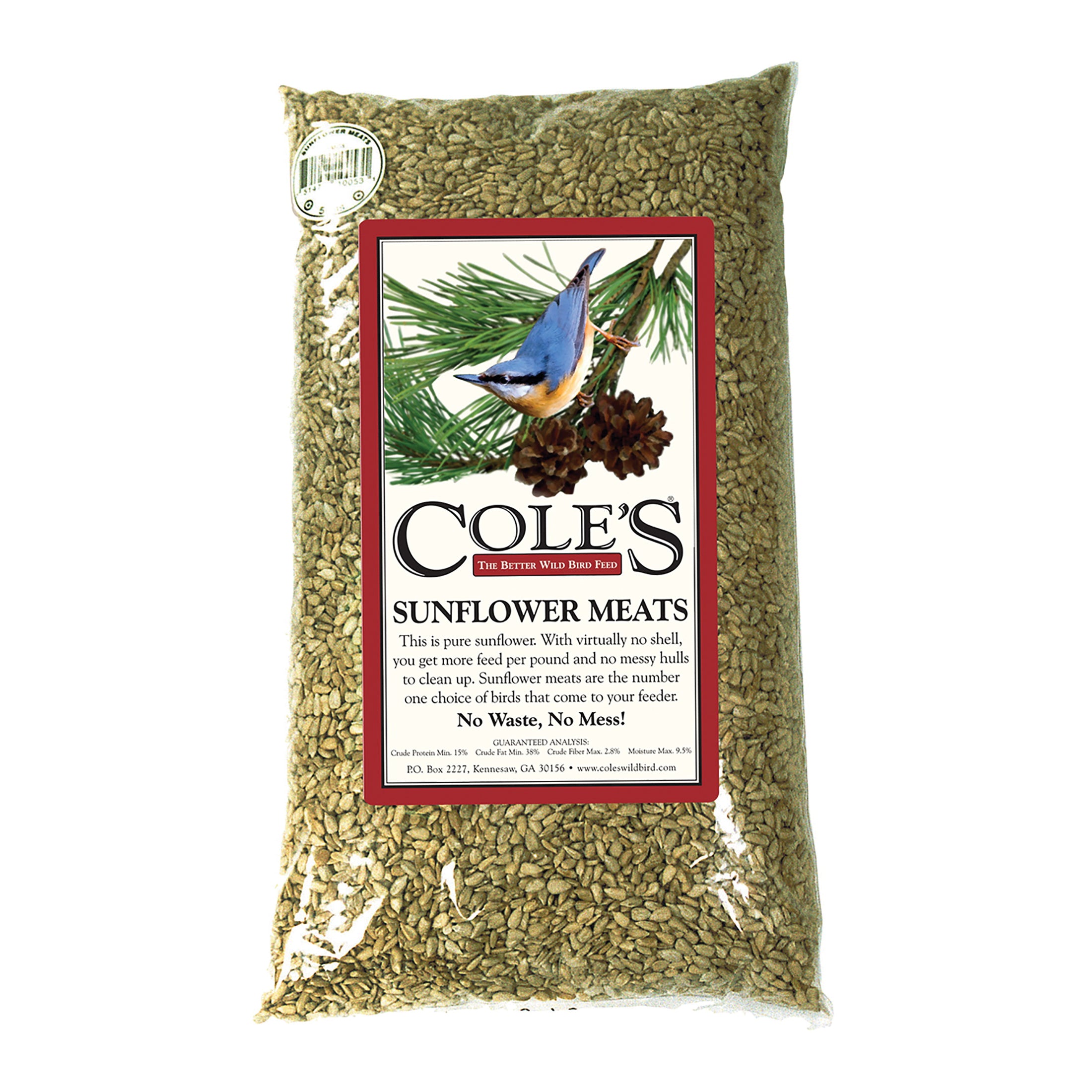 Sunflower Meats is the only true no waste, no mess feed. This is pure sunflower and the bird's number one choice. With almost no shell, you get more feed per pound and no messy hulls to clean up. It's ideal if you want to feed from balconies and decks without the mess of leftover shells.