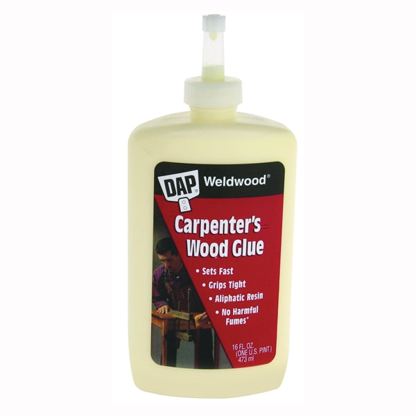 DAP® Weldwood® Carpenter's wood glue is a professional-grade aliphatic resin premium glue that provides fast, strong bonds for most porous and semi-porous materials.