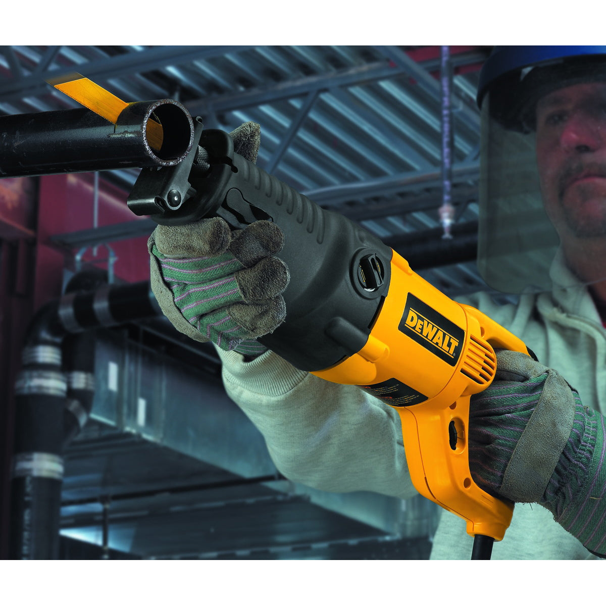 The DW311K reciprocating saw kit has a powerful 13 A motor which delivers the power needed for heavy-duty applications. The variable speed triggers allows users to match the speed to application up to 2700 spm and orbital action provides fast cutting in wood applications. Both the adjustable shoe and the blade clamp are keyless making shoe adjustment and blade changes quick and easy.