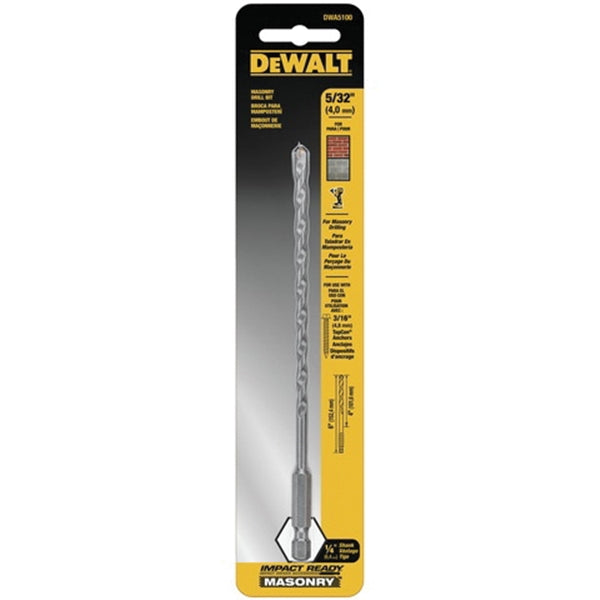 DEWALT Drill Bit, 5/32 in Dia, Flute Length: 4 in, Shank Type: Hex, Shank Diameter: 1/4 in, HCS, 6 in OAL, Applicable Materials: Masonry