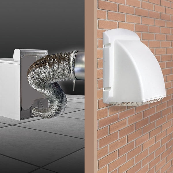The DUNDAS-JAFINE ProMax™ dryer vent kit is part of the ProSeries product line-up. The kit includes a 4 in ProMax™ exhaust hood, a 4 in x 8 ft ProFlex™ 2158A listed and marked transition duct and 2 plastic adjustable clamps. The ProMax™ exhaust hood features a robust, wide mouth cap for optimum airflow and snug fit backdraft damper that prevents cold air, snow or rain from entering the home. The damper has been redesigned for great noise reduction. Additional features of the hood include a removable pest screen that helps to keep pests out and allows for easy cleaning of the duct as well as a snap on pipe to cap assembly that eliminates the need for lint trapping staples. All ProMax™ products have a UV-resistant coating to prevent the cap from discoloring and are paintable to match the exterior of your home. These hoods can be used in conjunction with brick, concrete or siding.