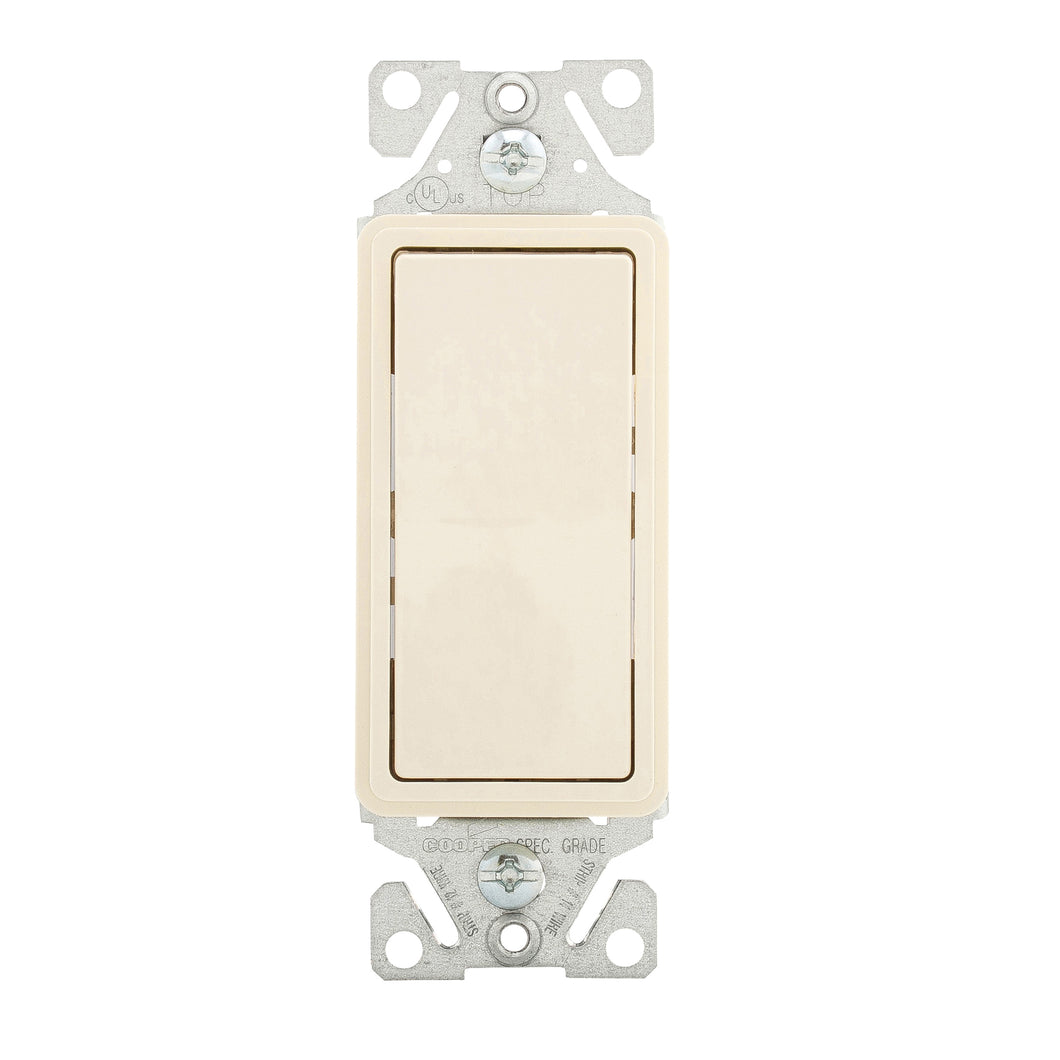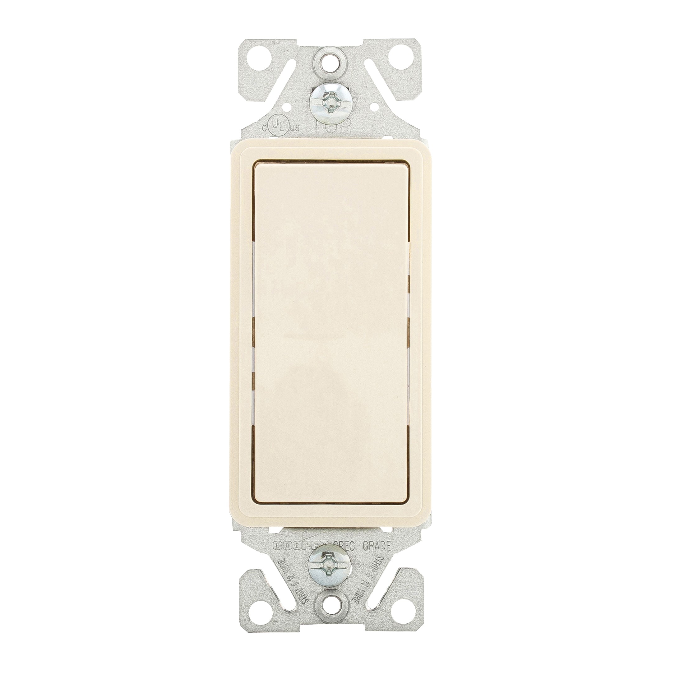 Ultrasonic welding and integrated construction of the strap and body. Backwire clamps on the side terminals for installation of #12 and #14 wire. Thermoplastic rocker, top and back body are virtually unbreakable. Screws accept slotted, Phillips and Robertson head tools for installation in both the USA and Canada. Longer, wider strap provides 40% more contact area to wall board. Virtually eliminates floating installations. Built-in wire stripper for #12 and #14 wire. Stippled ground screw standard. 15 A, 120/277 VAC rating for fluorescent lighting fixtures typical in commercial applications. Push in terminals accept #14 solid wire only. Temperature rating of -20 to 60 deg C. Meets flammability requirements per UL 94, 6504, V2 rated, VO rated. UL and cUL listed, meets all UL20 requirements.