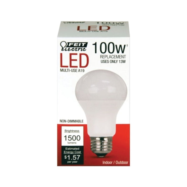 Enjoy all the benefits of advanced LED energy saving technology with the Feit Electric A1600/827/10KLED A19 frosted 100 W LED light bulb. This 2700K soft white light is non-dimmable and will replace a 100 W equivalent incandescent bulb. It produces a similar light output (1500 Lumens), uses 15 W of electricity and up to 86% less energy than a standard incandescent light bulb. Get instant on to full brightness with relatively cool running performance. Choose a dependable light for daily tasks or any general-purpose residential or commercial applications.