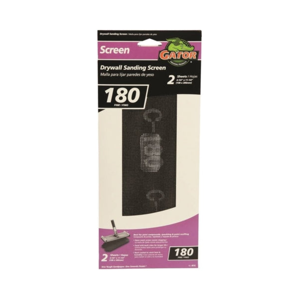 Gator sanding screen is ideal for finishing drywall prior to painting, feathering of joint compounds and spackling and scuff sanding painted walls before applying new paint. The nylon open mesh design allows sanding dust and debris to pass through, reducing clogging while the dual-sided grit doubles the life of the sheet, simply turn it over and you have a brand new sheet to sand with. This waterproof screen can also be rinsed with water and reused, extending the life of the screen.