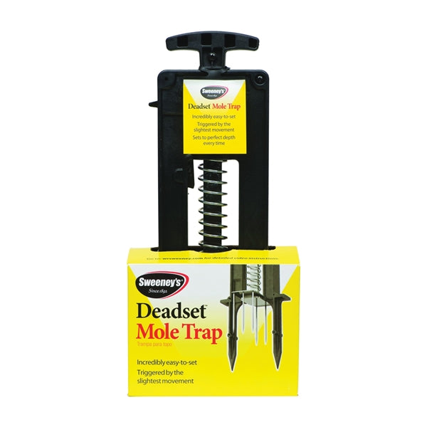 Trapping moles has never been easier, thanks to the sleek, ergonomically designed Deadset® mole trap. If you've ever struggled to set a mole trap, you will undoubtedly appreciate how effortless it is to activate this yard mole trap. The Deadset® features a comfortable, easy grasp handle and an oversized activator plate that can be pushed into the tunnel by hand or foot.