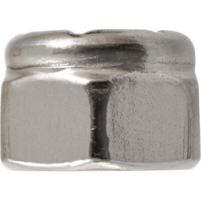 These nylon insert stop and lock nuts are ideal to securely fasten a bolt when connecting materials. Use these hexagonal nuts with bolts and washers of the same material, finish and grade. The nylon ring inside the nut creates rotational resistance when displaced by a mating male threaded fastener, thus preventing loosening. The nylon insert also helps resist vibration and adds extra corrosion resistance.