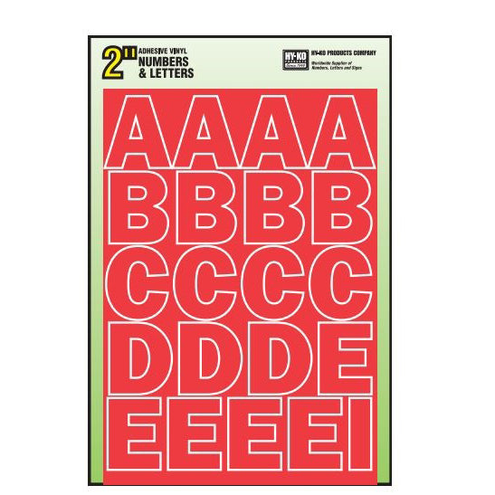 HY-KO Die-Cut Number and Letter Set, Character Height: 2 in, Background Color: Red, Character Color: Red, Vinyl, Dimensions: 7.81 in W x 11.63 in H