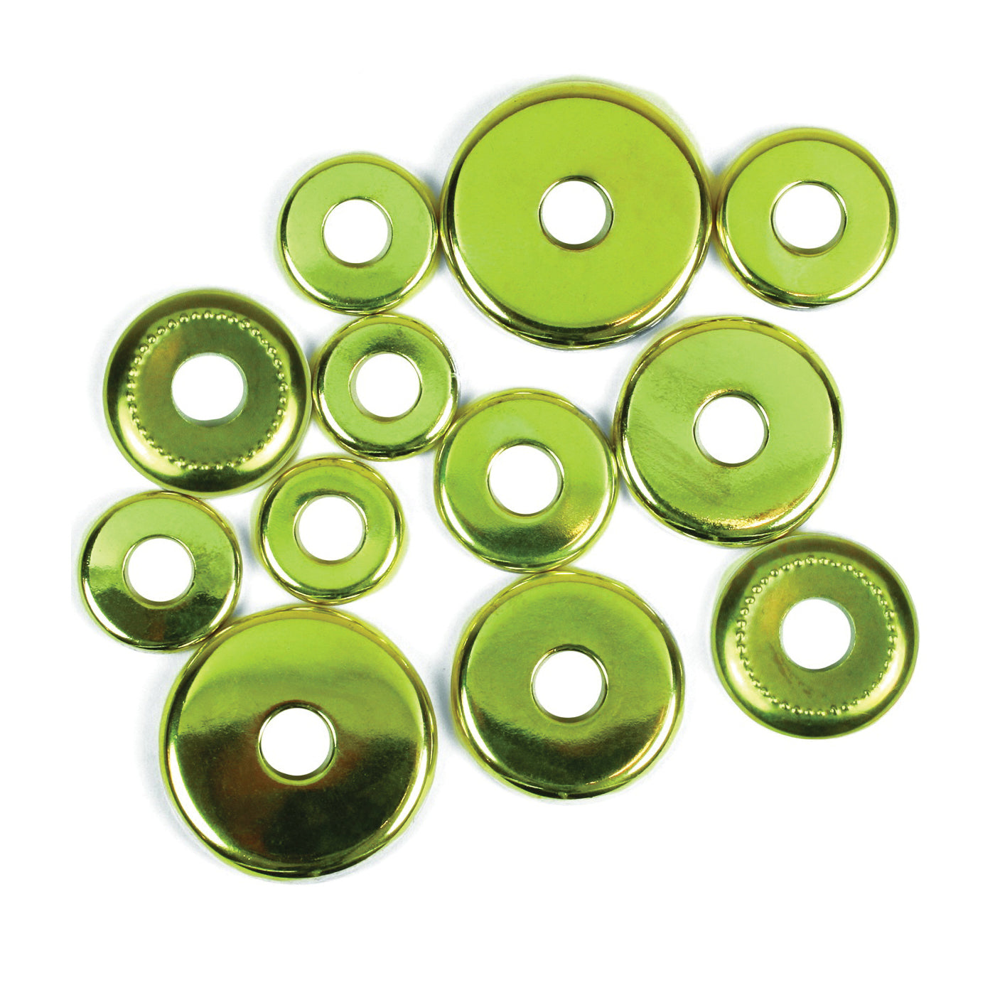 Decorative highlight to cover opening. Contains 12 assorted check rings for 1/8 in IP lamp nipples.
