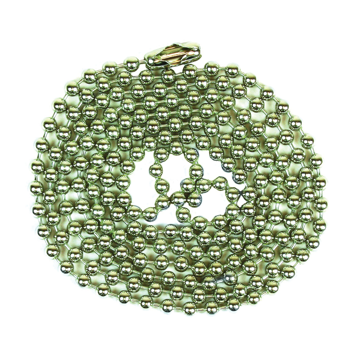 • Jandorf 94991 Beaded Chain with Connector, 3 ft L, Steel, Nickel