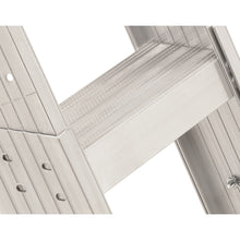 This Louisville Energy Efficient Series aluminum attic ladder has a working load capability of 375 lb. This energy-efficient ladder features an insulated door with R-10 extruded foam and weather stripping seal that reduces air leakage. This attic ladder fits ceiling heights of 7 ft 7 in to 10 ft 3 in and has a rough opening of 22-1/2 in X 54 in. The Energy-efficient AEE2210 features slip resistant cross-tread steps, adjustable shoes, an advanced cylinder design, and an ergonomic T-handle.