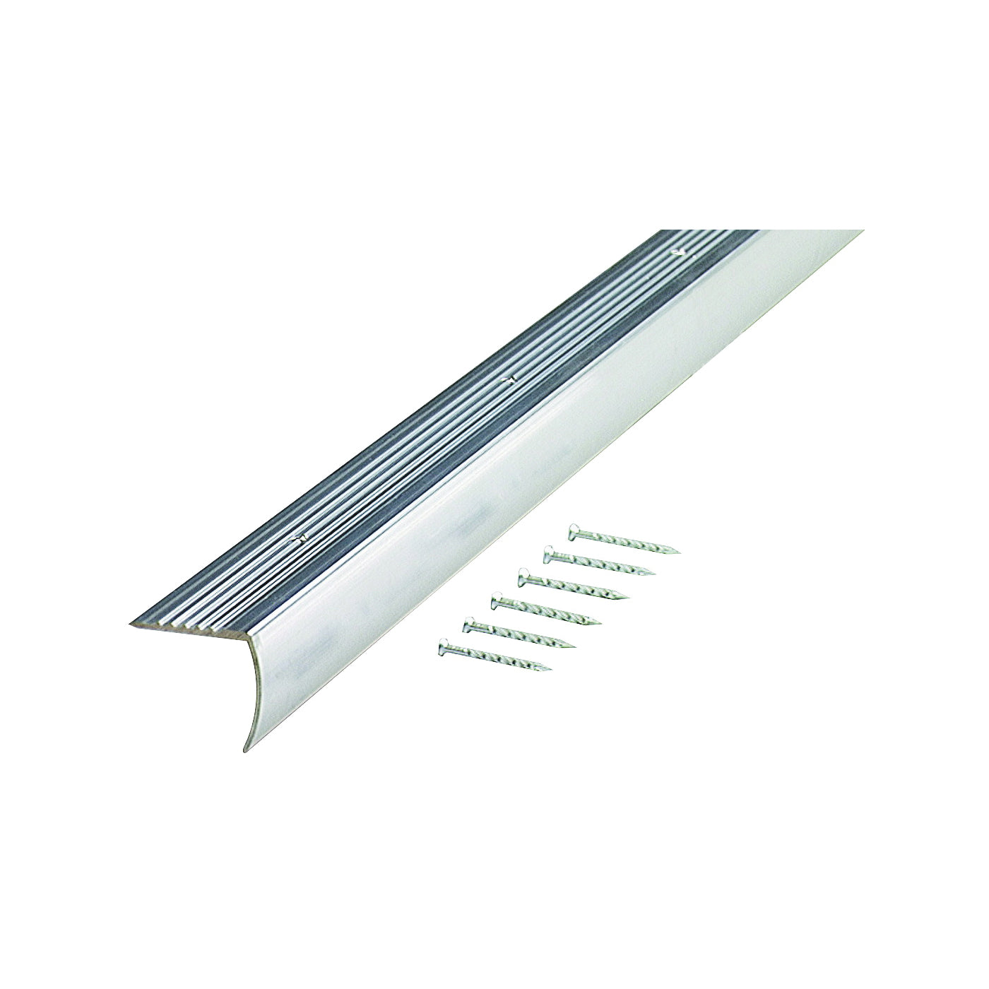 Smooth edging protects and improves the appearance of stair edges. Includes screw nails to secure edging. 1-1/8 in H.