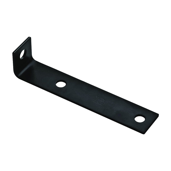 Used to reinforce a 90 deg angle through application on the inside. 1/2 in Dia holes. Extra length on one leg gives extra reach to provide greater stability. Black powder coat finish for improved weather resistance.
