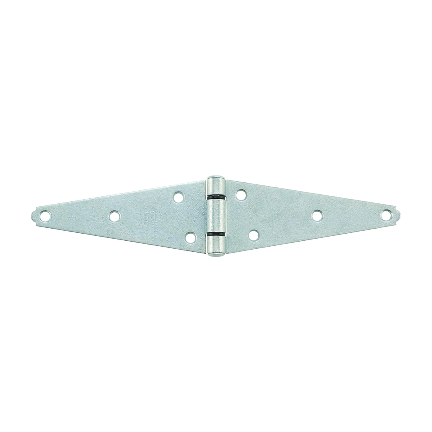 National Hardware Strap Hinge, 20 lb Weight, Number of Holes: 8, Door Leaf Length: 6 in, Frame Leaf Width: 2.43 in, Screw Mounting, Steel, Dimensions: 12 in, Includes: #9 Screw