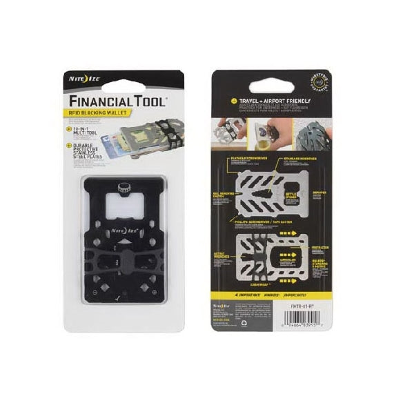 This triple-duty Financial tool is a wallet, multi-tool and RFID-blocking protector all in one. Featuring 10 different tools integrated into its compact, heat treated stainless steel plates held together by our high tensile Cash Wrap Strap, it offers endless problem solving solutions all while protecting your cards from anyone looking to compromise them. Placing your RFID enabled cards between the stainless steel plates provides maximum effectiveness against unauthorized attempts to access your information.With your cash and cards securely inside, you can pop a top, open a box, tighten a screw and much more. This surprisingly sleek wallet has the tools you need a bottle opener, five standard-size wrenches, six metric-size wrenches, a nail-removing notch, a Philips screwdriver, flathead screwdriver, scraper, metric and standard rulers, a protractor and the Cash Wrap Strap. This Financial tool RFID blocking wallet won't let you down.