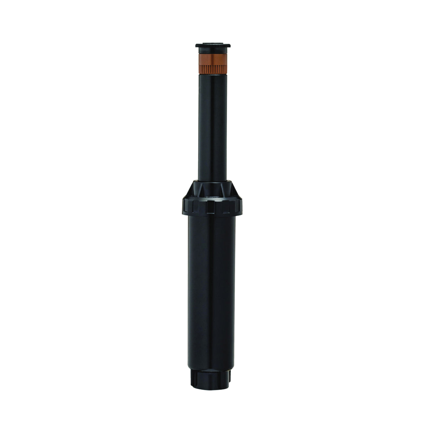 Spring-loaded pop-up economy head with plastic nozzle for medium size yards. Space 10 to 15 ft apart. Wiper seal keeps out sand and grit. Stainless steel retraction spring. 1/2 ft MNPT connection.