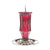 Attract wild birds and add elegance to your backyard with the Perky-Pet® amethyst starburst vintage wild bird feeder. Embossed starburst accents embellish the antique glass bottle of this decorative bird feeder, bringing to mind the vibrant, colorful glass frequently. The circular wrap-around perch provides a comfortable resting place for birds to sit and dine. The open tray style base allows birds to eat from anywhere they choose. Drain holes are included on the bottom of the base to keep bird seed dry and fresh. The all-metal base and hanger are finished with a brushed nickel finish, completing the vintage design.