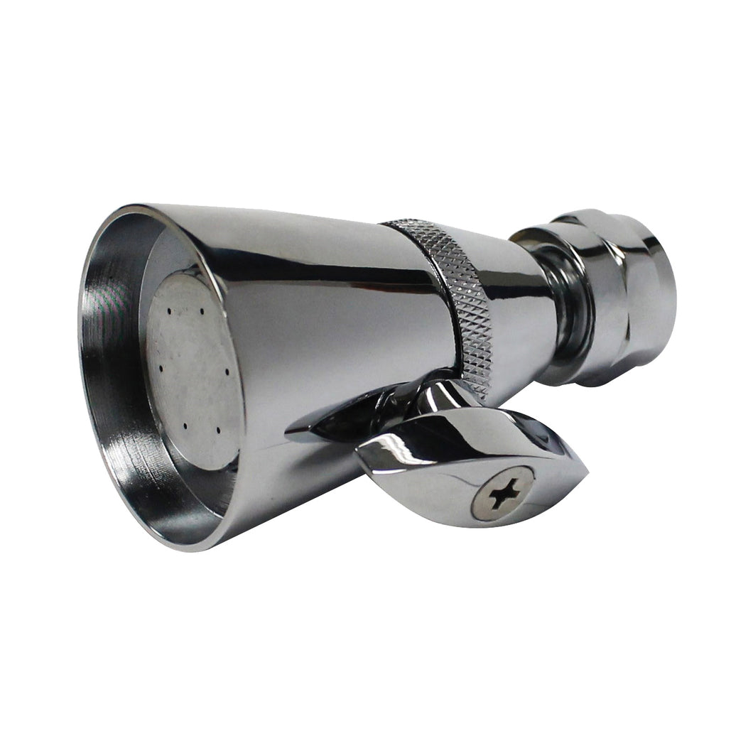 Wall-mounted shower head is fully adjustable with a maximum output of 1.8 gpm. Side-dial makes it easy to change spray output. Chrome-plated brass housing.