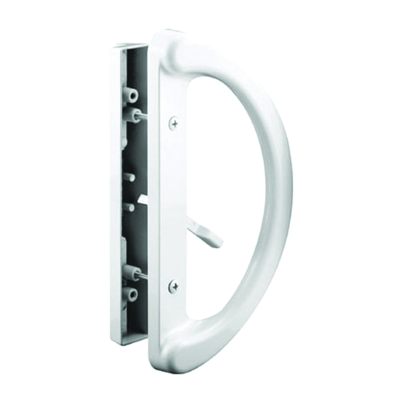 Standard reversible surface mount for left or right handed mortise locking doors. Die-cast inside pull and thumb turn with steel latch activator. Outside pull is die-cast and has a removable knockout plug for adding a key cylinder. Note: Mounting holes may need to be enlarged to 5/16 in Dia if base of handle does not seat flush against surface of door.