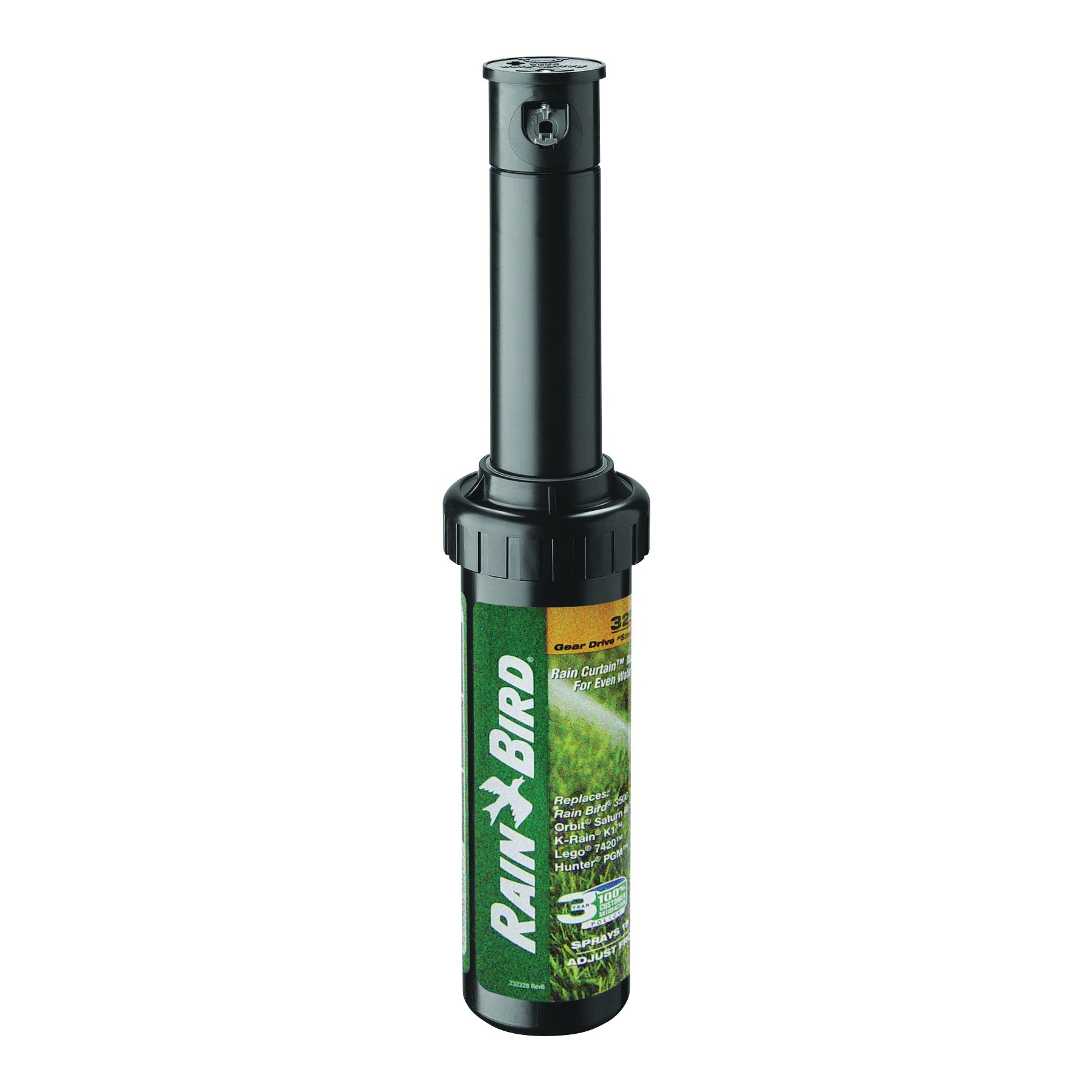 This professional-grade Rain Bird 32SA rotor sprinkler features great durability plus the exceptional watering uniformity of patented Rain Curtain nozzle technology, resulting in a greener and more even lawn with reduced watering time. The rotor distributes larger water droplets that cover evenly throughout the pattern, also reducing wind-blown overspray. Nozzle micro ramps direct a portion of the spray near the head, adding gentle close-in coverage with reduced watering velocity that won't wash out new seed. Simple top adjustments for arc and distance help you keep water on the grass, not spraying on the house, sidewalk or driveway.