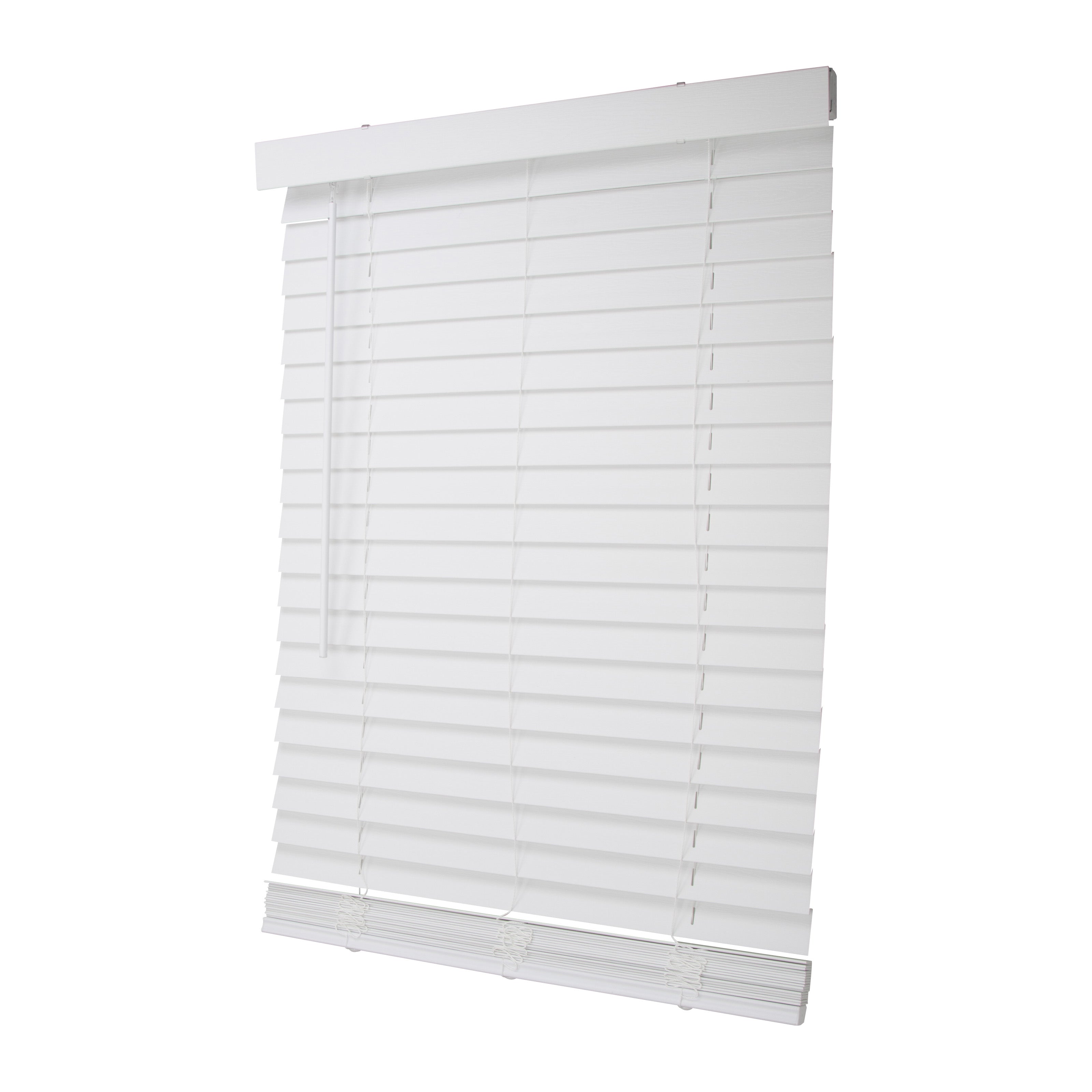 Simple Spaces Blind, Cordless, Mini, Faux Wood, White, 64 in Length, 27 in Width, 2.4 mm Thickness, Inside Mounting, Suitable for: 26-3/4 to 27-1/2 W Window in, Includes: Mounting Hardware and Instructions
