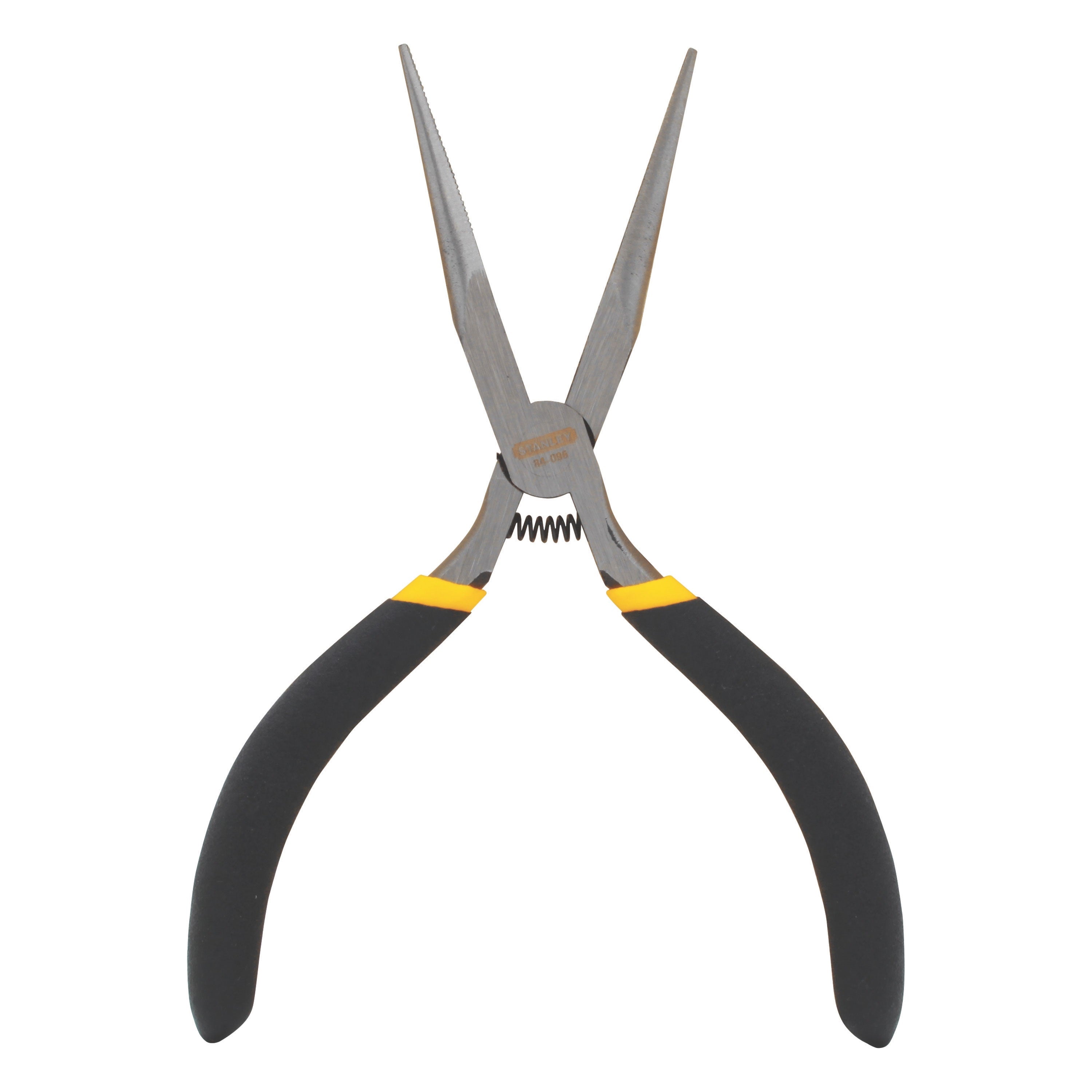 Made of forged steel construction with long tempered jaws for working in hard-to-reach areas. Rust-resistant finish. Double-dipped handle for comfort. Meets or exceeds ANSI standards.