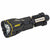 Compact tripod design for hands-free convenience. Weather-resistant anodized aluminum tripod legs. Multi-position head focuses light where it's needed. Flashing low-power indicator light. Impact-resistant design with a graphite ABS composite head and shatter-resistant polycarbonate lens. 4-position switch for low, medium, high or off. Requires 3 AAA batteries (not included).