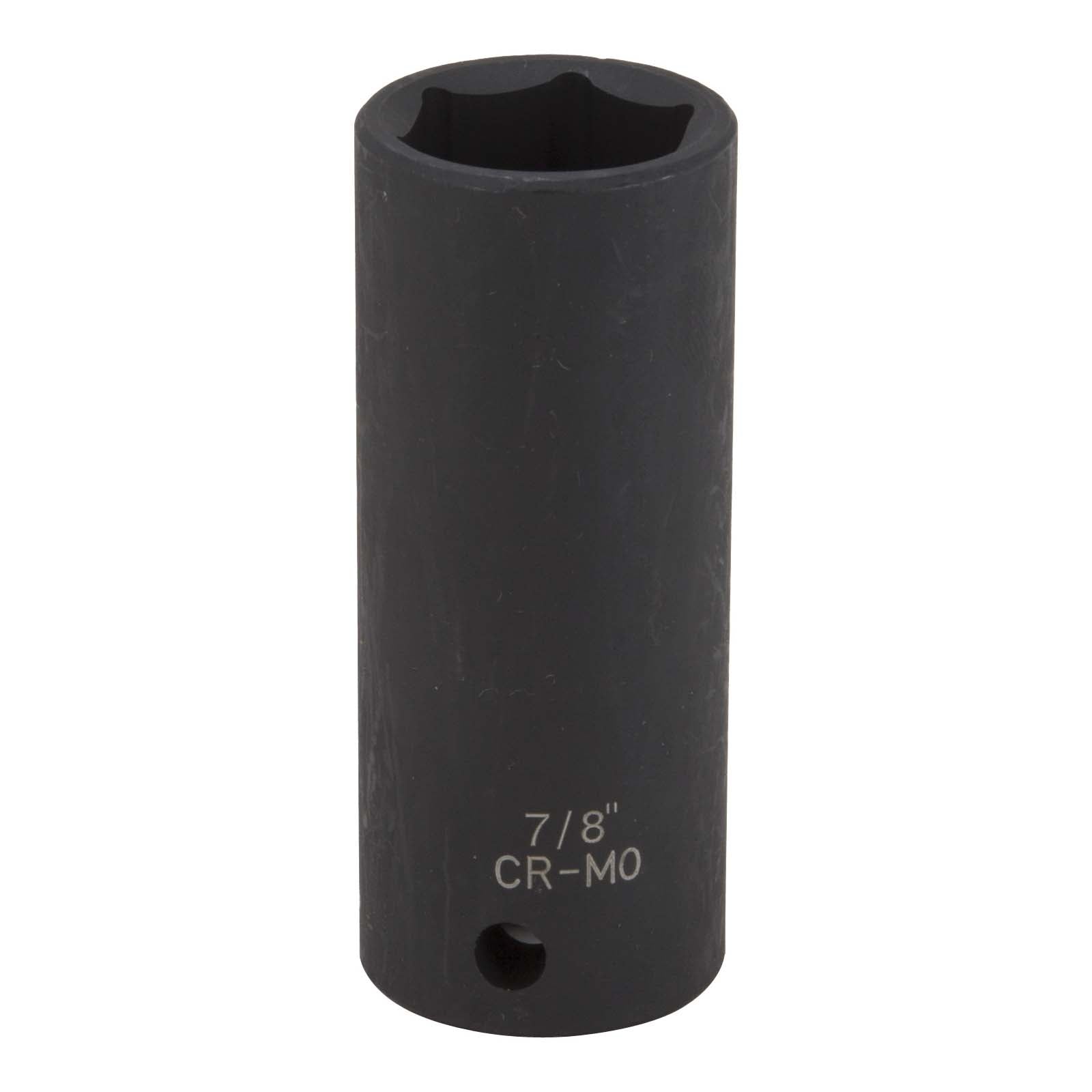 This Vulcan impact socket helps you tackle the toughest jobs with a chrome molybdenum alloy steel grip that won't let go. The solid durability keeps it driving through job after job. The steel frame reduces wear and increases torque on fasteners by placing force on fastener walls rather than fastener corners. The corner design provides the strength and flexibility to handle high torque impact tools.